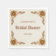 Dessa trendiga bröllopsdusch servetter har en ram av stilrena retroblommor och blad i vintage neutrala färger som brun, beige, guld, olivgrön och elfenbenskräm med retro stil text.