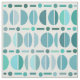 Ett vintage stil i mitten av århundradet i mönster med geometriska skålsformer, punkter och linjer. Blå och vit grönt.