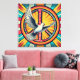 Dove och fredstecken i en boho retro stil. Röd, blå och gult vintage färg.