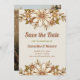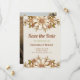 Det här trendiget sparar datumkorten med snyggt återblommor och löv i vintage neutralt färg som brun, beige, guld, oliv grönt och elfenbensgrädde med text från retro stil. Kortets baksida innehåller fotot. Perfekten att tala om för vänner och familj att du är upptagen med att vara gift!