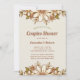 De här inbjudningarna till trendig par möhippa innehåller snyggt återblommor och löv i vintage neutralt färg som brun, beige, guld, oliv grönt och elfenbensgrädde med texten i retro stil.