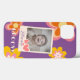 Boho Retro Flowers Rosa Gult Photo iphone case. En groovy, söt och roligt boho-reflexdesign med färgstarka blommor och en vintage-tittar polaroid-ram med hjärtan som mittpunkt. Anpassa iphone case med ditt baby-foto och namn och tillför lite 70-tal till ditt dagliga liv. Det här är också en underbar gåva till en ny mamma, mormor, moster eller gudmor.