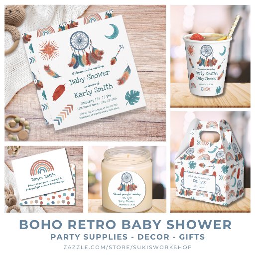 Boho Retro Sol Måne Baby Shower Tack Kort