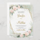 Boho Rosa Blommigt Greenery Guld Ram Bröllop Inbjudningar