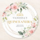 Boho rosa blommigt guld tiara sage Quinceanera Underlägg Papper Rund