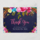 Boho Rosa Watercolor-Blommigt på Navy Chalkboard Möhippa Tack PostCard.