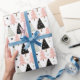 Boho rosa, grönt och svart Julgran som slår in pappert lakan. Rulle omslagspapper.