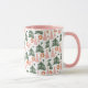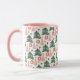 En roligt boho Julgran mugg med rosa orange och grönt Julgranar på den. Du kan ändra handtagets färg och insidan till grönt, eller ett annat färg om du vill.