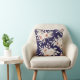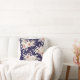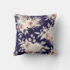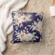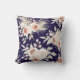 Dekorativ kudde har en mönster av vattenfärgen boho stil blek rosa ros och löv på en marin blå bakgrund. Båda sidor av kudden har samma mönster.