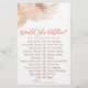 Det här är en Skulle hon hellre? Möhippans spel. *Skulle hon hellre? - Briden kommer att fylla i sitt eget personliga svar lakan. Gästerna kommer att ringa in det rätta alternativet med tanke på sina egna personliga kunskaper om bruden. Den som får de rätta svaren vinner! Boho Rosa Blommigt Flowers, spel för möhippa, mutor att bli, möhippa, möhippa, roligt möhippa-spel