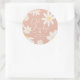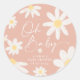 Denna runda klistermarke är en del av den blomsterrika tusensköna-barnkalas-samlingen som kännetecknas av retro-stil med akvarell tusenskönor och rosa färg som är perfekt för flickors födelsedag eller baby shower. Med otaliga anpassningsalternativ är denna mall lätt att anpassa till alla evenemang och enkel att matcha med dina färger.