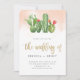 Fira bröllop med de här boho sommarinbjudningarna. Perfekt för mexikanskt eller ökentemat firande. Med vattenfärgscykler överst med rosa ombre-bakgrund. "Bröllop av" visas i en chic faux guld foil calligraphy. Anpassa enkelt dina party-detaljer i modern typografi. Återgå till en vattenfärg tvättar.