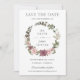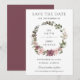 Denna eleganta boho bröllopskort har en krans av mjuka och ömma cinnoberrosor och skära blommor, prydd med frodig grönska. Personifiera det med dina detaljer enkelt och snabbt genom att trycka på knappen för anpassning för att ytterligare ändra stil och placering av texten. (c) The Happy Cat Studio