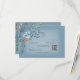 Svarskortet i bröllop har en vacker blommigt med blått och brinnande vattenfärgsrosa orangar på en mjuk rektangel med oskärpa placerad på en dammig blå bakgrund. Mjuk och delikat; perfekt för alla säsonger. Skapat av Farmhouse Press.