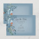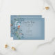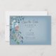 Den här bröllop spara datum-kortsdesignen har vackra blommigtar med blått och brinnande vattenfärgsrosa orangar på en mjuk vit oskärperektangel som placeras på en dammig blå bakgrund. Mjuk och delikat; perfekt för alla säsonger. Skapat av Farmhouse Press.