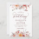 Handmålad inbjudan till ett bröllop med vattenfärg med rost-, burgny-, bränd orange- och terracotta-blommor och grön med ett modernt kalligrafiskt skript. Du kan anpassa texten, teckensnittet stil, färg och storlekt framför och bakom inbjudan. Du är välkommen att kontakta mig för matchande artiklar.