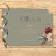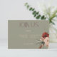 Vi presenterar vår exquisite boho rust & neutralt fall bröllopsmottagningskort för blommigt, en perfekt blandning av elegans och bohemisk charm! Det här fantastiska kortet har en bakgrund för grönten som anger tonen för ett romantiskt och tidlöst firande. Det här kortet är förenat med två boho blommigt bouquets, och det förkroppsligar naturskönhetens och den rustiska allitens innersta väsen. Bho-blommigten buquets visar en delikat blandning av grädde, persikor, och rostonerade blommor som är noggrant arrangerad med lush grey. Dessa eteriska blommor symboliserar kärlek, glädje och löftet om en blomstrande framtid tillsammans. Den harmoniska kombinationen av färg och struktur skapar ett förtjusande synspektakel som kommer att fånga era gästhjärtan. Låt er berättelse om kärlek gå upp i stil med detta fantastiska kort som kommer att ange perfektens ton för er speciella dag. Skapat av Farmhouse Press, det är en del av Boho Rust & Neutralt Fall Blommigt bröllop-kortsamlingen.