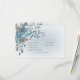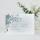 Svarskortet i bröllop har vackra blommigtar med rosa vattenfärgsfärg i blått och brinnande orange på en mjuk rektangel med oskärpa placerad på en ren vit bakgrund med en mjuk blå oskärpa. Mjuk och delikat; perfekt för alla säsonger. Skapat av Farmhouse Press.