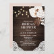 Boho rustic inbjudningskort för möhippan har mason burk beige och vita blommor och torkad handflatan löv på träbakgrund.