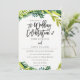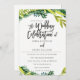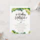 Boho Rustic Blommigt Bröllop designad av Birch + Blommar.Grymma löv runt framsidan av inbjudan som skapar en rustik stil ram. Texten är en bra balans mellan manus och modernt. På inbjudets baksida finns en underbar halvcirkel av samma löv med bruden och brudgummens initialer.