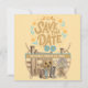 Boho inspirerade Cowboy Rustic bröllop till temat "Spara datumet"-kort. På framsidan finns det ett par med sol och måne som säger: "Enhet & Kärlek". I baksidan står det "Spara datumet" och du kan anpassa med ditt eget datum.
