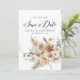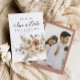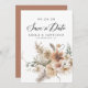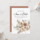 Boho Rustic Save the Date var designat med illustration av blommigten med jordton. Anpassa kortet genom att lägga till ditt favoritfoto på baksidan. Cava Party Design