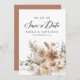 Boho Rustic Save the Date var designat med illustration av blommigten med jordton. Anpassa kortet genom att lägga till ditt favoritfoto på baksidan. Cava Party Design