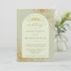 Utformningen har en charmerande bågform som är försedd med detaljer om blommigten i guld-tonade accenter. Med sidans grönt förbättras den enkla illustrationen stil, perfekt för boho och romantiskt bröllop.