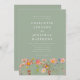 Boho chic blommigt Fall Sage grönt bröllopsinbjudan med vattenfärg Wildblommålade . Den här eleganten skickar grönt Bröllbjudan med OSA bröllop webbplats QR-kod, en fantastisk blandning av autocharm och sofistikering av eleganten. Den här vattenfärgskonstruktionen visar handmålade vilda blommor i en levande trädgårdsskugga, med en rik av bränd orange, terracotta, brun, lila, gult, korall, bränt antal, persikor och mjuk rosa, som fångar höstens värme och skönhet mot bakgrund av en sund grönt. Elegant, vit modern typografi mot bakgrund av en grönt för snyggtar ger en förfinad beröring, medan de visuella blommigtarna ger din inbjudan en personlig, boho flair. Med mallar som är enkla att använda för använda kan du enkelt anpassa all viktig bröllop-information, inklusive en QR-kod för bröllop-webbplatsen för dina gäster så att de enkelt kan få OSA online. Designat med det ursprungliga teckningsarbetet av Catherine Sweetman balanserar denna inbjudan på ett utmärkt sätt naturens charm med tidlös elegans, vilket anger perfektens ton för ditt oförglömliga firande. Låt inbjudan välkomna dina gäster in i er speciella dags värme och skönhet.