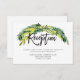Boho Rustic Floral bröllopsmottagning kort designad av Birch + Blossom. Vackra akvarellblad omger framsidan av kortet och skapar en rustik ram. Texten är en fin balans mellan handskrift och modern stil. På baksidan av inbjudan finns en vacker halvcirkel med samma blad och brudparets initialer. Glöm inte att kolla in de andra "Boho Rustic Floral" -artiklarna i kollektionen för att skapa ett sammanhängande tema för din bröllopsfest.