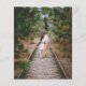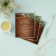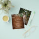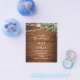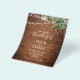Boho-bröllopskort har vattenfärggrönska och strängljus på rustikt trä.