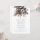 Denna eleganta, boho, rustika vattenfärg blommiga tallbarrs bröllopsinbjudan kan anpassas med din bröllopsfestinformation i chic, modern typografi med en registret QR-kod på baksidan. Designad av Thisisnotme©