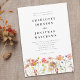 Boho chic blomsterlig höstbröllopsinbjudan med akvarell vilda blommor äng handmålade blommor. Denna moderna färgglada vilda blomma Bröllopsinbjudan med en fantastisk blandning av höstlig charm och elegant sofistikering. Denna akvarelldesign visar handmålade vilda blommor i en livfull trädgårdsäng, med en rik palett av bränd orange, terrakotta, brun, lila, gul, korall, bränd umber, persika och mjuk rosa, som fångar värmen och skönheten i höst på en salvia grön bakgrund.