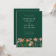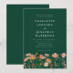 Boho chic blomster höst grön bröllopsinbjudan med akvarell Vildblomma äng handmålade blommor. Denna eleganta rika mörkgröna bröllopsinbjudan med en fantastisk blandning av höstlig charm och elegant sofistikering. Denna akvarelldesign visar handmålade vildblommor i en trädgårdsäng, med en rik palett av bränt orange, terrakotta, brunt, lila, gult, korall, bränt umber, persika och mjuk rosa, som fångar värmen och skönheten i höstsäsongen på en smaragd mörkgrön bakgrund.