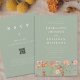 Boho chic blomster höst sagegrön bröllopsinbjudan med akvarell vildblomma äng handmålade blommor. Denna eleganta sagegröna bröllopsinbjudan med RSVP bröllopswebbplats QR-kod, en fantastisk blandning av höstlig charm och elegant sofistikering. Denna akvarelldesign visar handmålade vildblommor i en livfull trädgårdsäng, med en rik palett av bränt orange, terrakotta, brunt, lila, gult, korall, bränt umber, persika och mjuk rosa, som fångar värmen och skönheten i höstsäsongen på en sagegrön bakgrund.