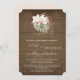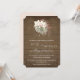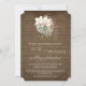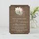 Mörkt väderbitet träpapper bakgrund sätter den avspända, välkomnande rustika tonen för denna djungel bohemiskt inspirerade, tropiska strandbröllopsinbjudan. Alla designerna i denna kollektion är utformade för att enkelt kunna kombineras för ett verkligt unikt och minnesvärt bröllop. Akvarell orkidé floral och palm och delad blad philodendron bladkonst skapades av internationellt känd och licensierad konstnär, Audrey Jeanne Roberts. Copyright.