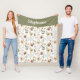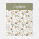 Boho Sagegrön Akvarell Vildblomma Monogram Fleecefilt