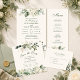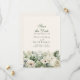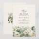 Denna boho-inspirerade Save the Date-kort har en vertikal layout med frodig, grönsaksgrön lövverk och elfenbensvita blommor. De mjuka, akvarellmålade blommorna inramar er underrättelse vackert och skapar ett varmt och romantiskt första intryck för era gäster. Perfekt för moderna boho-, rustika chic- och trädgårdsbröllop. Den luftiga kompositionen och neutrala färgerna speglar de ledande trenderna för 2025–2026 inom bröllopsfirande pappersvaror. Anpassa enkelt texten för att matcha era evenemangsupplysningar. Koordinerar med matchande inbjudningar, menyer, program och mer.