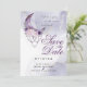 Rustik Boho Bröllop - Fantastisk ametistlila halvmåne-mandala med draperade pärlor omgiven av bleka rosafärgade dammiga rosor och lila blommor med blek salvia-gröna bladaccentuerade med en blek lila och guld vattenfärg bakgrund - baksidan har en
