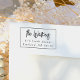 Simple return address stamp with your name in boho script lettering followed by your address in elegant serif italics. Around the text there is a bold rectangular frame with rounded corners. This is a wooden stamp, there is a self-inking version available in my store. Visit our store for more return address rubber stamps.