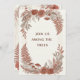 Bjud in dina gäster till en fest bland träden med denna rustika boho skogbröllopsinbjudan. Designad med handritade ormbunkar, svampar och vilda blommor i en mjuk dammros- och terrakotta-palett, har detta platta 5" x 7" kort charmig botanisk linjearbeten och trästrukturer. Framsidan har frasen "Join us among the trees" i ett elegant serif-teckensnitt, medan baksidan har plats för bröllopsdetaljer med minimala, naturinspirerade accenter. Tryckt på premium Signature Matte-papper för en tidlös känsla.
