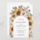 Boho Solrosbröllop - inbjudan. Tillsätt ett solsken till bröllop med dessa vackra, handmålade solrosor, vita daisy och sage grönt och terracotta-färgad-löv med gult av . Perfekt för en romantisk, rustik höst eller utomhussommarträdgårdsbröllop, dessa häpnadsväckande inbjudningar till chicen på Bho kommer att ange tonen för er speciella dag. Sök efter produkter i inbjudan till Rustic Watercolor Solros Wedding.