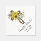 Skämmande, elegant solblommor, eukalyptus och pampasgräs som visas på en mörk kor skapar denna blommigt för dina baptismblor. Blommorna och kor är ställe på diagonalen för att skapa ett uppdaterat utseende. Namn och baptism visas också under kor. Denna kapkin är perfekt för alla sena sommar- eller höstbaptism.