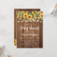 Den här solrosbabyduschinbjudan spricker med glädje! Konstruktionen har vackra solblommor och en tvillingsträng ljus mot bakgrund av rustiskt trä. Det är perfekt för en sommarbabydusch eller någon mamma att bli som kärlek en aning boho charm.