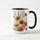 Släng din favoritdryck i stil med det Boho-inspirerade mugg, med handdragna solblommor, daisy och poppies som är sammanflätade med geometrisk stambaserad mönster i varma jordnära nyanser som terracotta, bränd orange och oliv grönt. Perfekt för att lägga till en vintage, fri hand i kök eller på kontoret. Högupplöst botaniskt verk som är designat endast för utskrift på begäran.