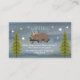 Skalat raffelkort med en illustration på framsidan av en björn som vilar på gren i träd mellan två evergreen träd med bruna bakgrunder och stjärnor. Björnen bär en blomma krona.