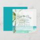 Meddela om er stora dag med denna boho kustnära bröllopsinbjudan "save the date" med elegant mörk teal-typografi. Den akvarellmålade oceanen, sandiga stranden och palmerna skapar en avspänd men ändå förfinad kustnära look. Designad för destinationbröllop, strandceremonier och tropiska firanden, blandar detta kort naturlig skönhet med modern typografi. Den mörkare texten lägger till kontrast samtidigt som den bibehåller en mjuk, romantisk känsla. Personalisera med era namn, datum och bröllopsplats. Ett stilrent val för par som planerar ett kustnära bröllop med en modern boho-touch.