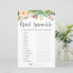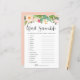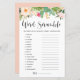 Lägg till den här roligten baby ord-spelkortet till babyduschen. Det här babyduschkortet har vattenfärgsillustrationer, självhäftande, blommor och löv. Anpassa genom att lägga till information. Det här babyduschspelet är perfekt för sommarbabyduschar.