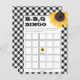 Boho Sunny gult vattenfärgssolblommor blommigt design med svart och vit buffel kontrollerar babyduschens BaByQ Bingo-kortdesign. Sammansatt design efter Helgdag Hearts-design (reserverade höger).
