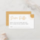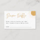Boho Chic script grafisk "Blöja Lotteri", baby shower enclosure kort. Kortfunktioner, linje konst sol illustration i rustik gul färg med matchande gul mönster bakgrund.